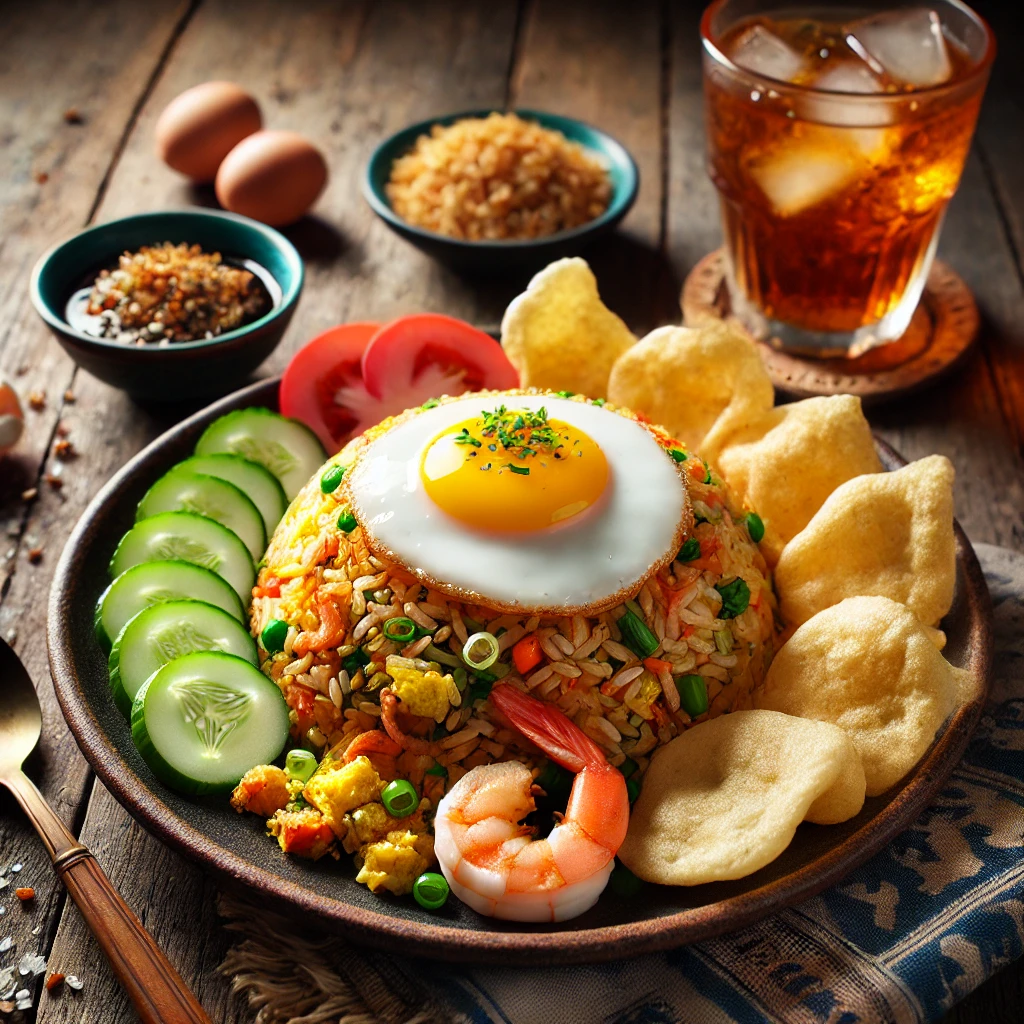 λμκ³ λ(Nasi Goreng)μ μΈλλ€μμλ₯Ό λννλ μμμΌλ‘, νμ§μμλ "λ³Άμλ°₯"μ μλ―Έν©λλ€. κΈ°λ³Έμ μΌλ‘ λ°₯μ κ³ μν κ°μ₯ μμ€μ ν¨κ» λ³Άμ λ§λ€λ©°, κ³ κΈ°, ν΄μ°λ¬Ό, μ±μ λ± λ€μν μ¬λ£λ₯Ό 첨κ°ν΄ λ§μ κΉμ΄λ₯Ό λν©λλ€.