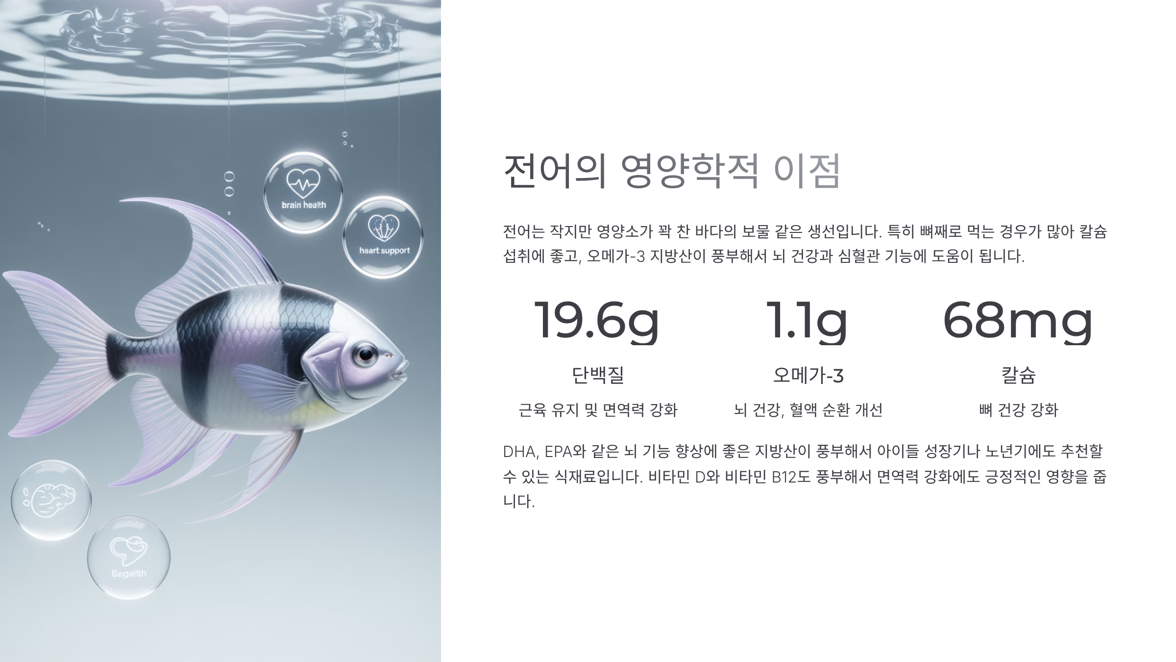 ์ ์ด๋ ์์ง๋ง ์์์๊ฐ ๊ฝ ์ฐฌ ๋ฐ๋ค์ ๋ณด๋ฌผ ๊ฐ์ ์์ ์ด์์. ํนํ ๋ผ์งธ๋ก ๋จน๋ ๊ฒฝ์ฐ๊ฐ ๋ง์ ์นผ์ ์ญ์ทจ์ ์ข๊ณ , ์ค๋ฉ๊ฐ-3 ์ง๋ฐฉ์ฐ์ด ํ๋ถํด์ ๋ ๊ฑด๊ฐ๊ณผ ์ฌํ๊ด ๊ธฐ๋ฅ์ ๋์์ด ๋ผ์.