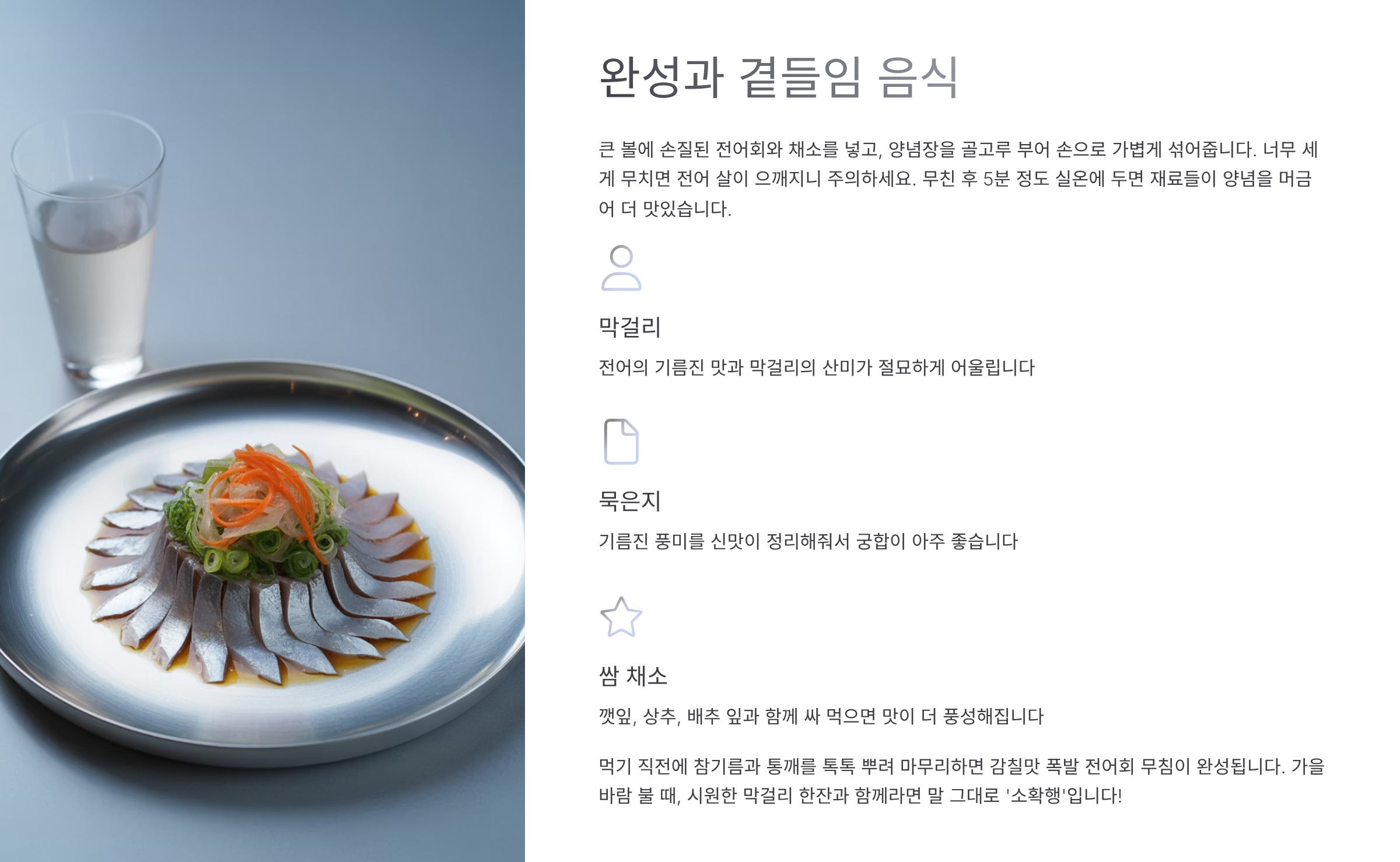 ์ ์ดํ ๋ฌด์นจ์ ๋จ๋ ์ผ๋ก ๋จน์ด๋ ๋ง์์ง๋ง, ๊ณ๋ค์ด๋ฉด ๋์ฑ ํ์ฑํด์ง๋ ์์๋ค์ด ์์ด์. ์ฒซ ๋ฒ์งธ๋ ๋ฐ๋ก ‘๋ง๊ฑธ๋ฆฌ’! ์ ์ด์ ๊ธฐ๋ฆ์ง ๋ง๊ณผ ๋ง๊ฑธ๋ฆฌ์ ์ฐ๋ฏธ๊ฐ ์ ๋ฌํ๊ฒ ์ด์ธ๋ ค์.