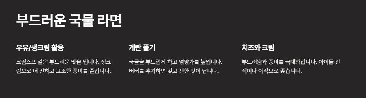 ๋ผ๋ฉด ๊ตญ๋ฌผ์— ์šฐ์œ ๋ฅผ ๋”ํ•˜๋ฉด ํฌ๋ฆผ์Šคํ”„ ๊ฐ™์€ ๋ถ€๋“œ๋Ÿฌ์šด ๋ง›์ด ๋‚ฉ๋‹ˆ๋‹ค.
