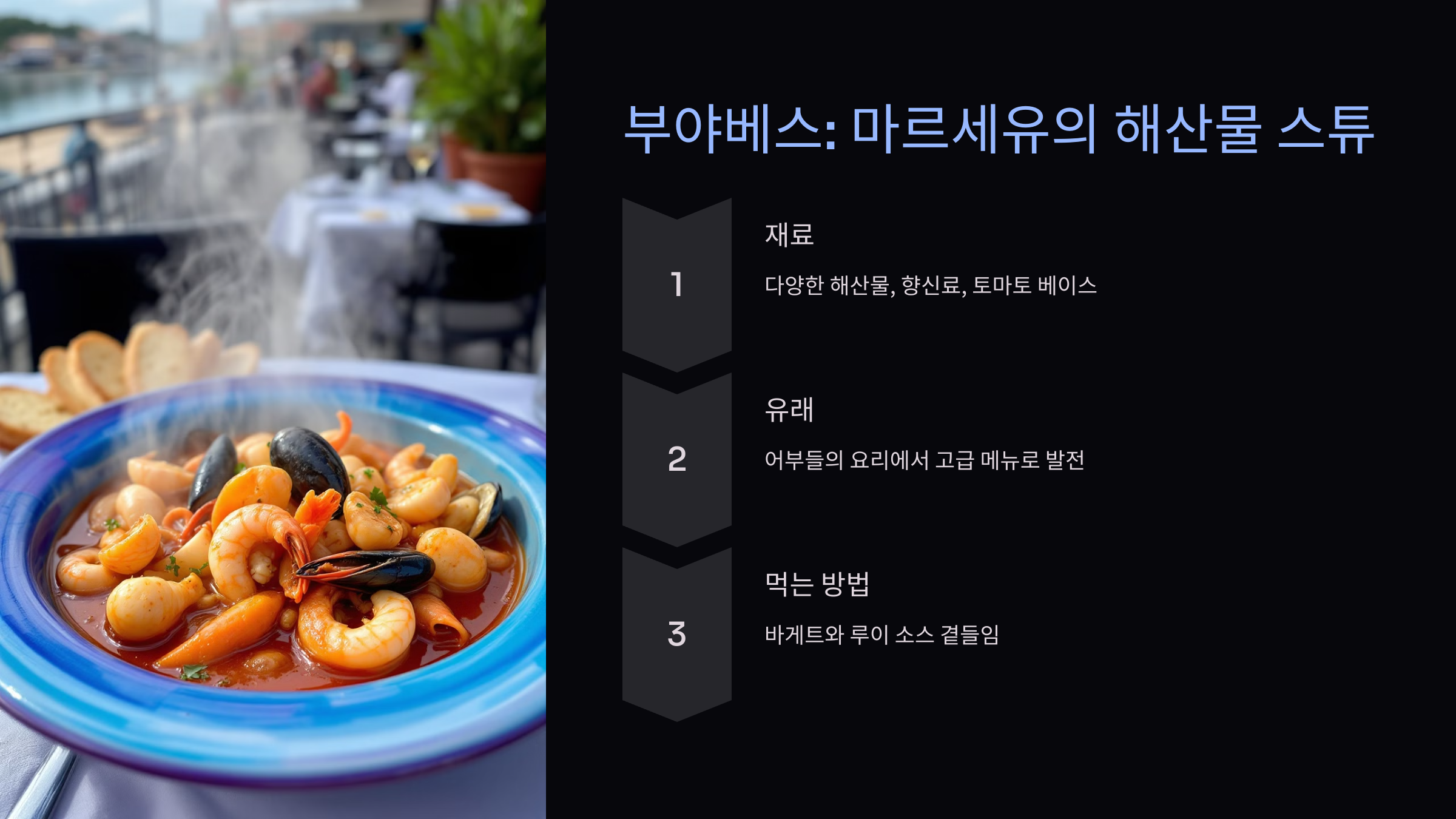 λΆμΌλ² μ€λ μ²μμ μ΄λΆλ€μ΄ νκ³ λ¨μ μμ μ μ΄μ©ν΄ λ§λ€μλ μλ¦¬λ‘ μμλμμ΄μ. μ€λλ μλ κ³ κΈ λ μ€ν λμ λν λ©λ΄λ‘ μ리 μ‘μλ΅λλ€. λ¨Ήλ λ°©λ²λ λ νΉνλ°μ, λ°κ²νΈ λΉ΅μ μ€νλ₯Ό μ°μ΄ λ¨Ήκ±°λ λΉ΅ μμ 루μ΄(Rouille) μμ€λ₯Ό λ°λΌ κ³λ€μ¬ λ¨Ήμ΄μ.