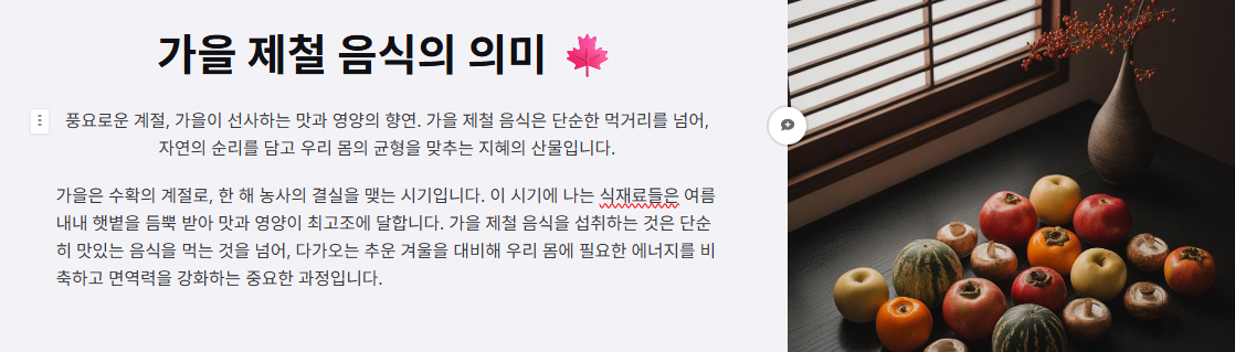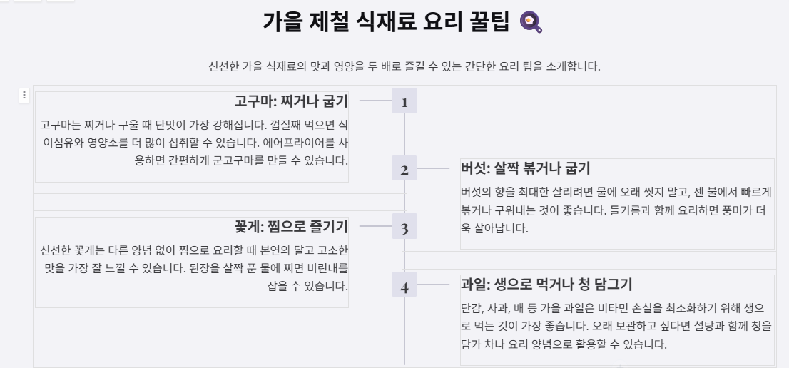 ๊ฐ์์ ๋๋ ์์๋ค์ ํ๋๊ฐ์ด ์๊ฐ์ด ํ๋ถํ๊ณ ํฅ์ด ์ง์ด์. ์๋ฅผ ๋ค๋ฉด ๋ฐค, ๊ณ ๊ตฌ๋ง, ๊ฐ, ๋ฐฐ, ๋ฌด, ๋ฐฐ์ถ, ๋ํ, ๊ฝ๊ฒ, ๊ตด ๋ฑ์ ๋ํ์ ์ธ ๊ฐ์์ ๋ง์ ๋ํํ๋ ์์ฌ๋ฃ๋ค์ด์์. ์ด๋ค์ ๊ฐ๊ธฐ ๋ค๋ฅธ ๋ง๊ณผ ์๊ฐ์ ๊ฐ์ง๊ณ ์์ด์ ๋ค์ํ ์๋ฆฌ์ ํ์ฉ๋๊ธฐ๋ ํ์ฃ .