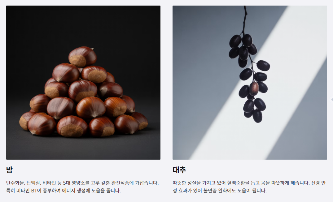 ๊ฐ์์ ๋๋ ์์๋ค์ ํ๋๊ฐ์ด ์๊ฐ์ด ํ๋ถํ๊ณ ํฅ์ด ์ง์ด์. ์๋ฅผ ๋ค๋ฉด ๋ฐค, ๊ณ ๊ตฌ๋ง, ๊ฐ, ๋ฐฐ, ๋ฌด, ๋ฐฐ์ถ, ๋ํ, ๊ฝ๊ฒ, ๊ตด ๋ฑ์ ๋ํ์ ์ธ ๊ฐ์์ ๋ง์ ๋ํํ๋ ์์ฌ๋ฃ๋ค์ด์์. ์ด๋ค์ ๊ฐ๊ธฐ ๋ค๋ฅธ ๋ง๊ณผ ์๊ฐ์ ๊ฐ์ง๊ณ ์์ด์ ๋ค์ํ ์๋ฆฌ์ ํ์ฉ๋๊ธฐ๋ ํ์ฃ .