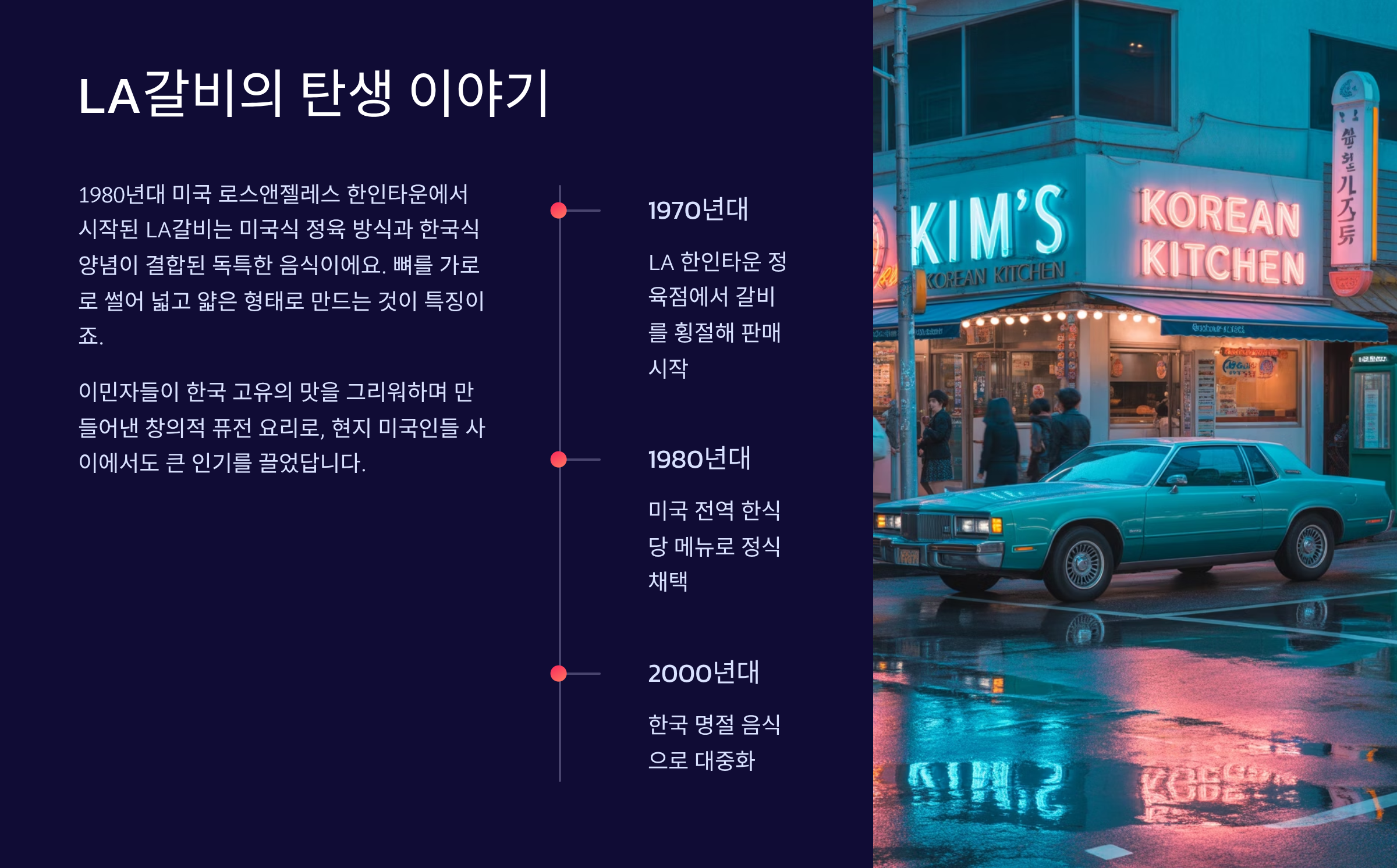 LA๊ฐ๋น์ ์ด๋ฐ ๋ฐฐ๊ฒฝ์ ์๊ณ ๋จน์ผ๋ฉด ๋ ๋ง์๊ฒ ๋๊ปด์ง์ง ์๋์? ๊ณ ๊ธฐ์ ๋ด๊ธด ๋ฌธํ ์ด์ผ๊ธฐ๋ ํจ๊ป ๊ณฑ์น์ด๋ณด๋ฉด ๋ ์๋ฏธ ์์ด์. ๐